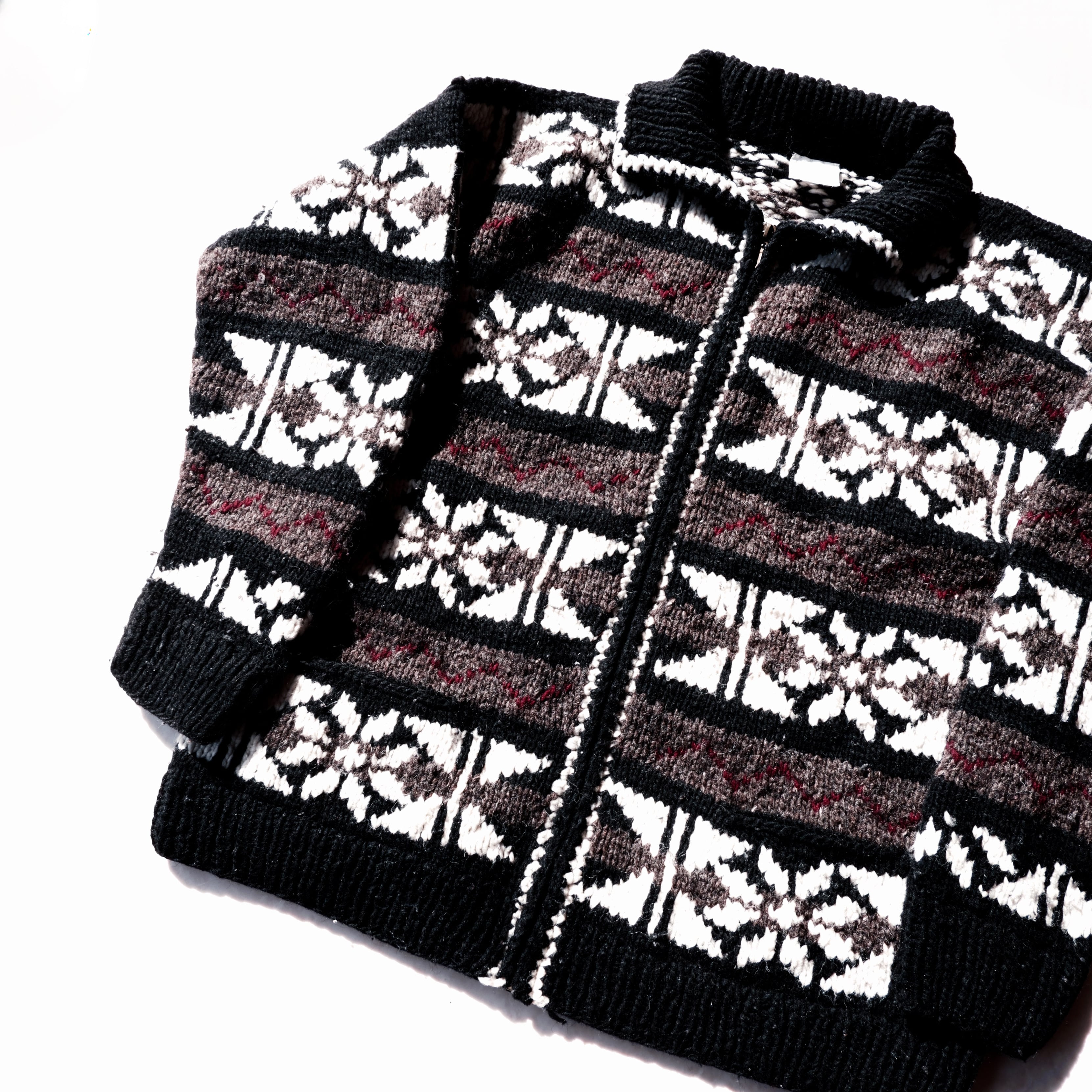 80s- Nordic pattern cowichan sweater