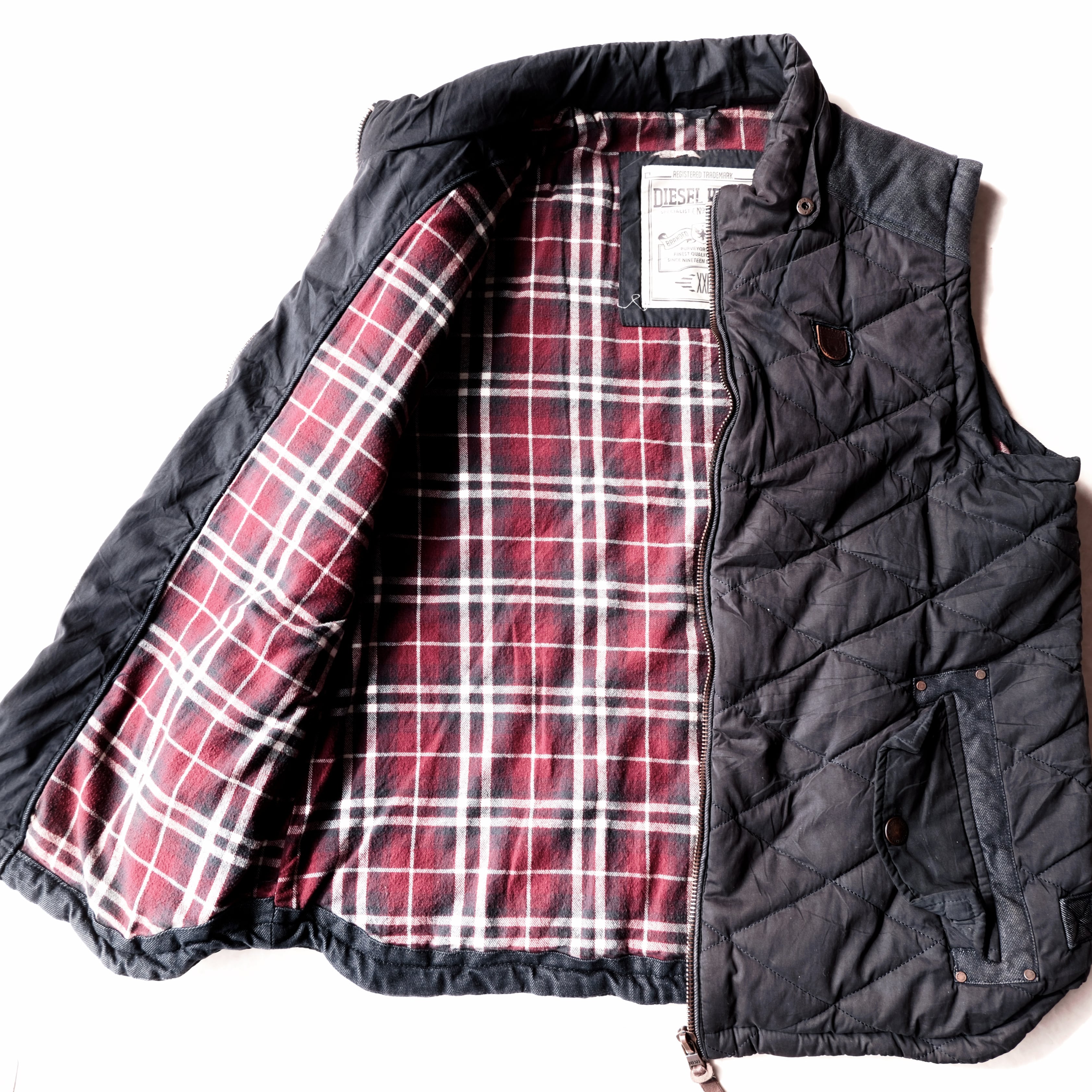 old DIESEL JEANS flannel liner quilted vest